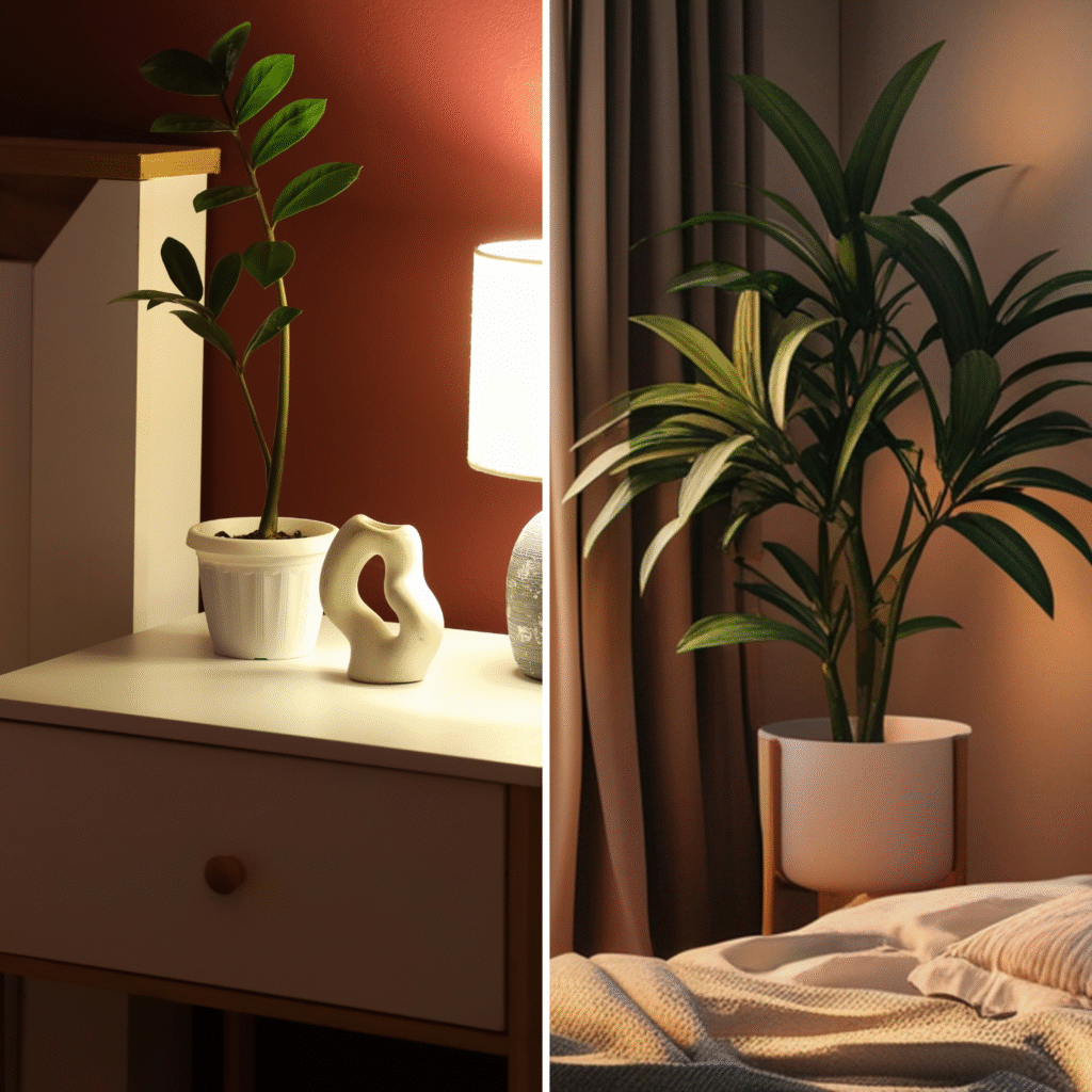 A single low-maintenance plant like this* on a nightstand or dresser adds life to the room. Greenery softens hard lines and makes the bedroom feel fresher.