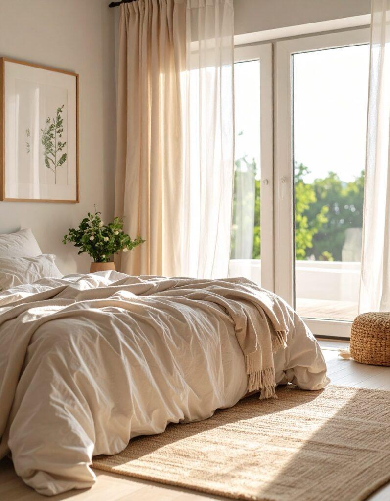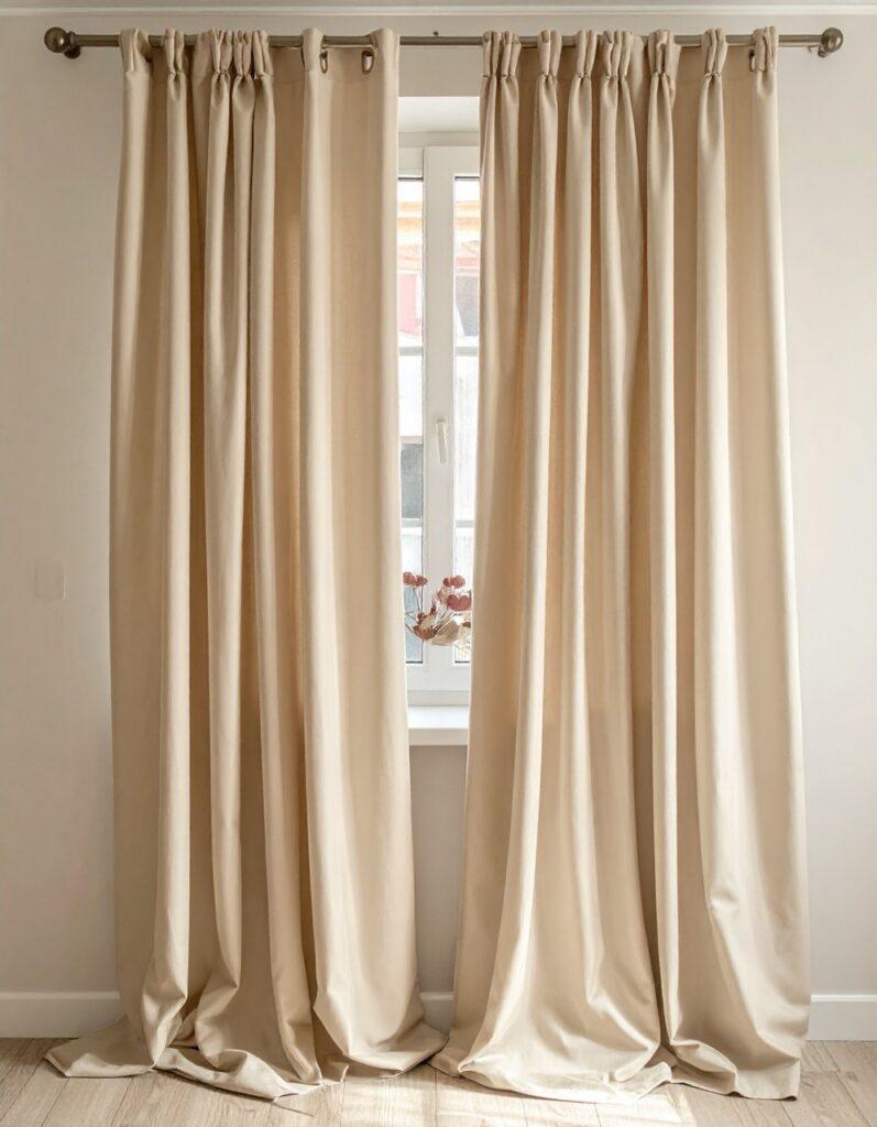 Curtains add height and softness. Even in small bedrooms, light, neutral curtains* instantly make the space feel calmer and more complete.