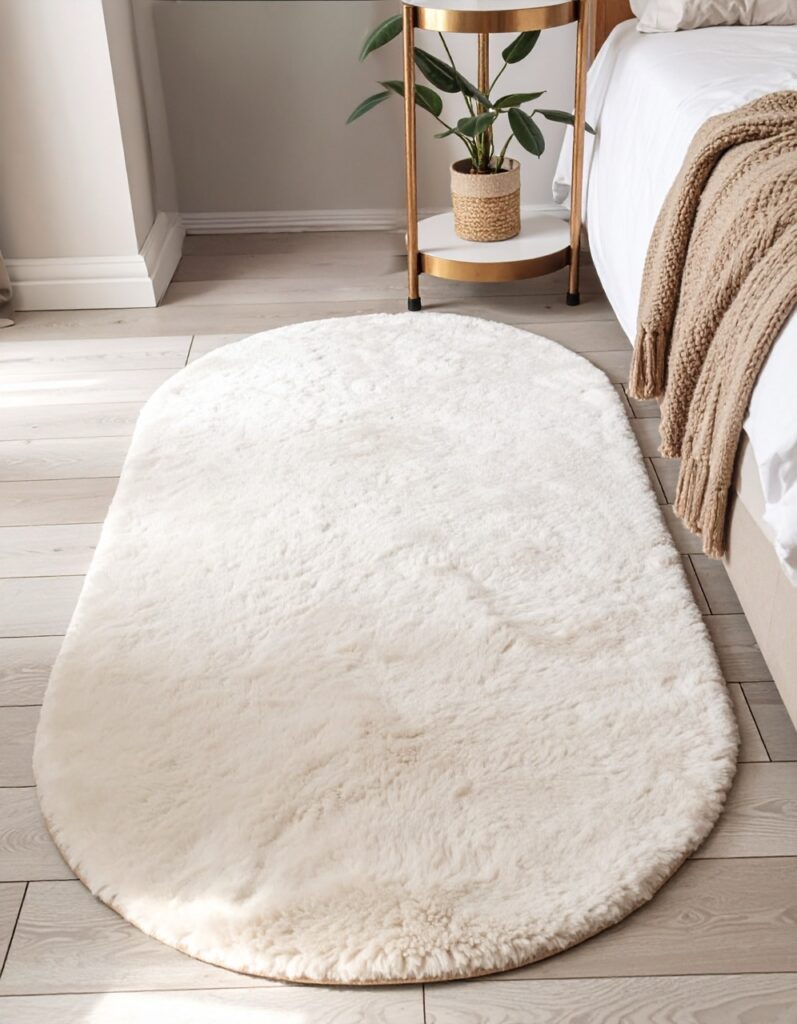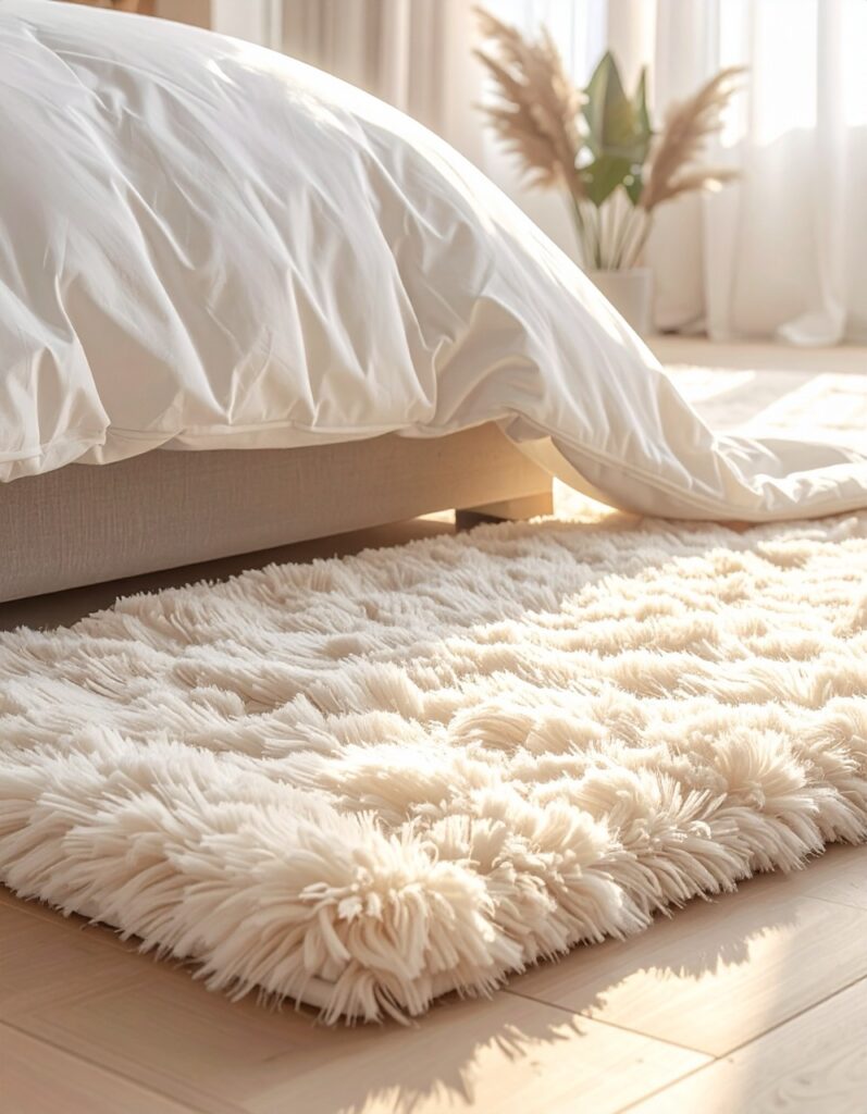 A rug anchors the room visually and makes it feel warmer. Even a small rug* next to the bed can change how the space feels when you wake up.