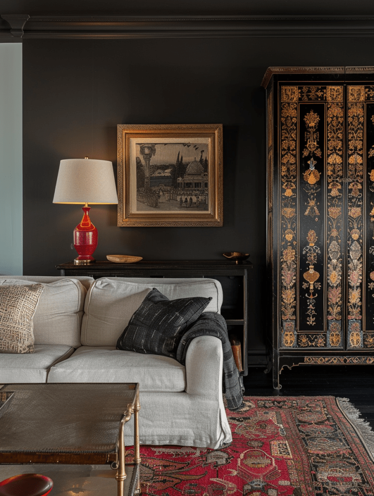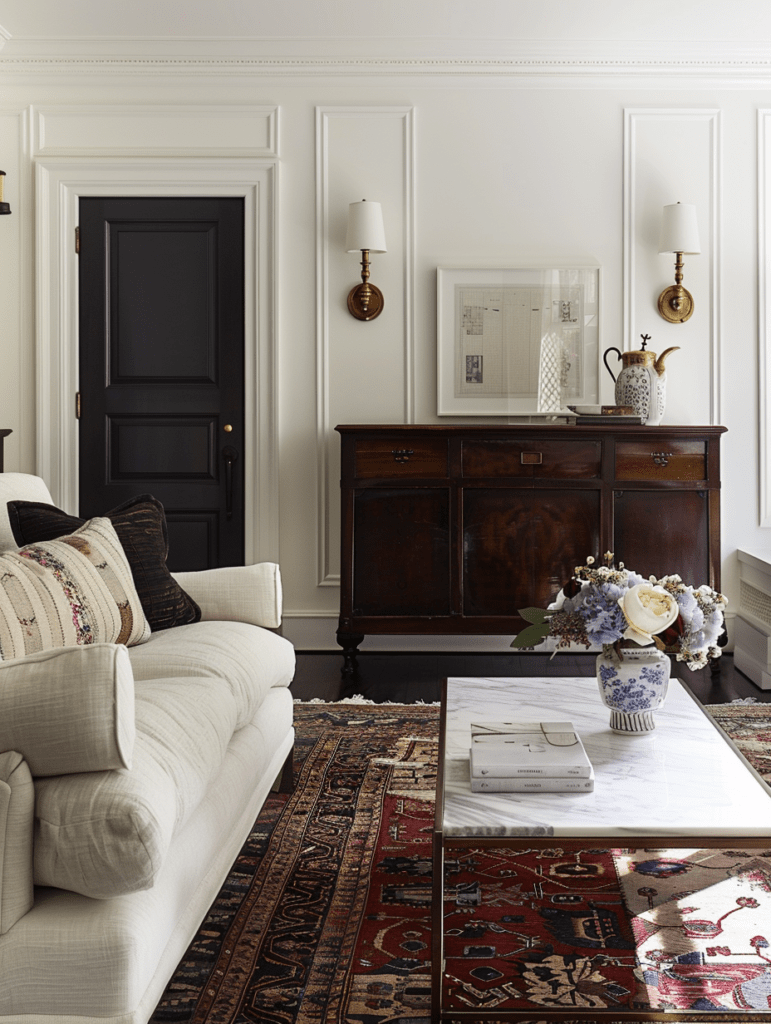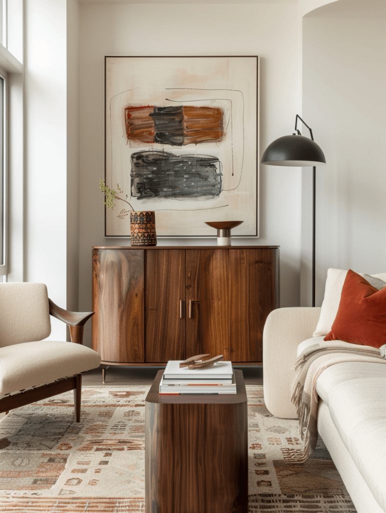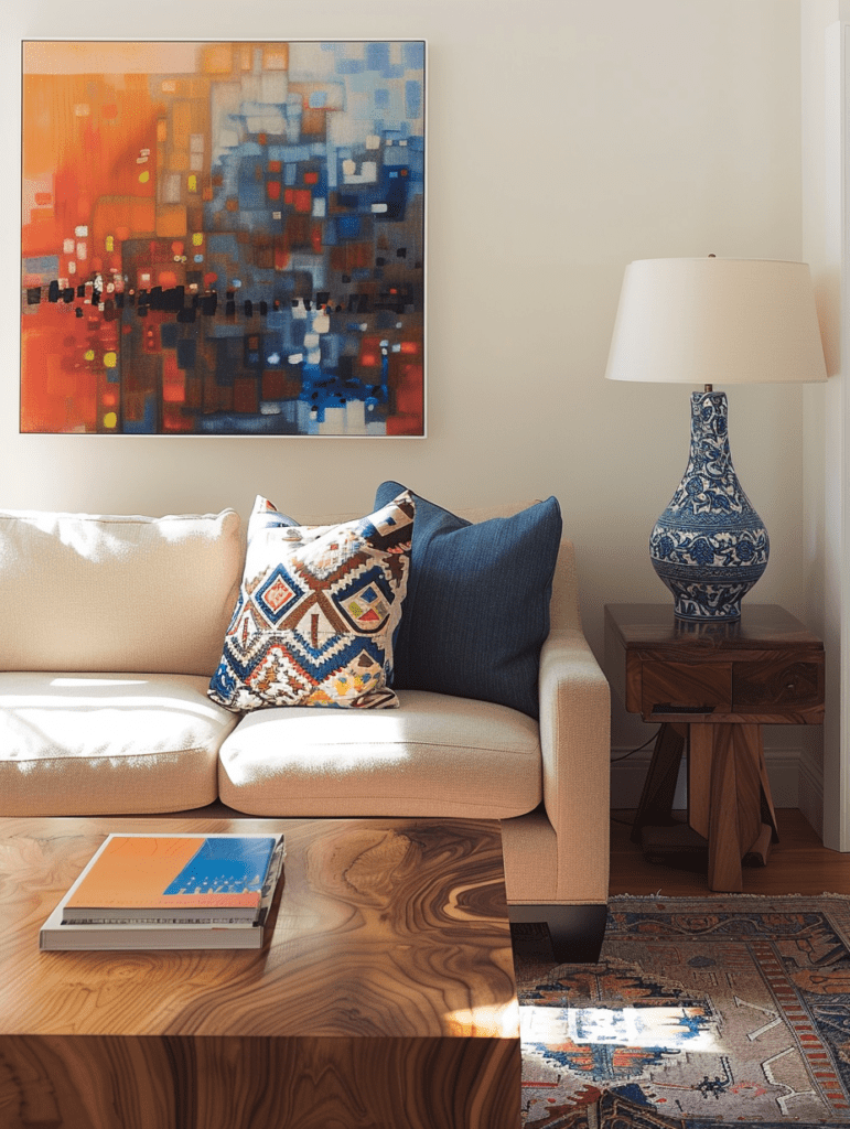 A modern sofa with an antique table. A rustic cabinet in a clean contemporary room. A bold artwork above classic furniture. These contrasts create personality.
