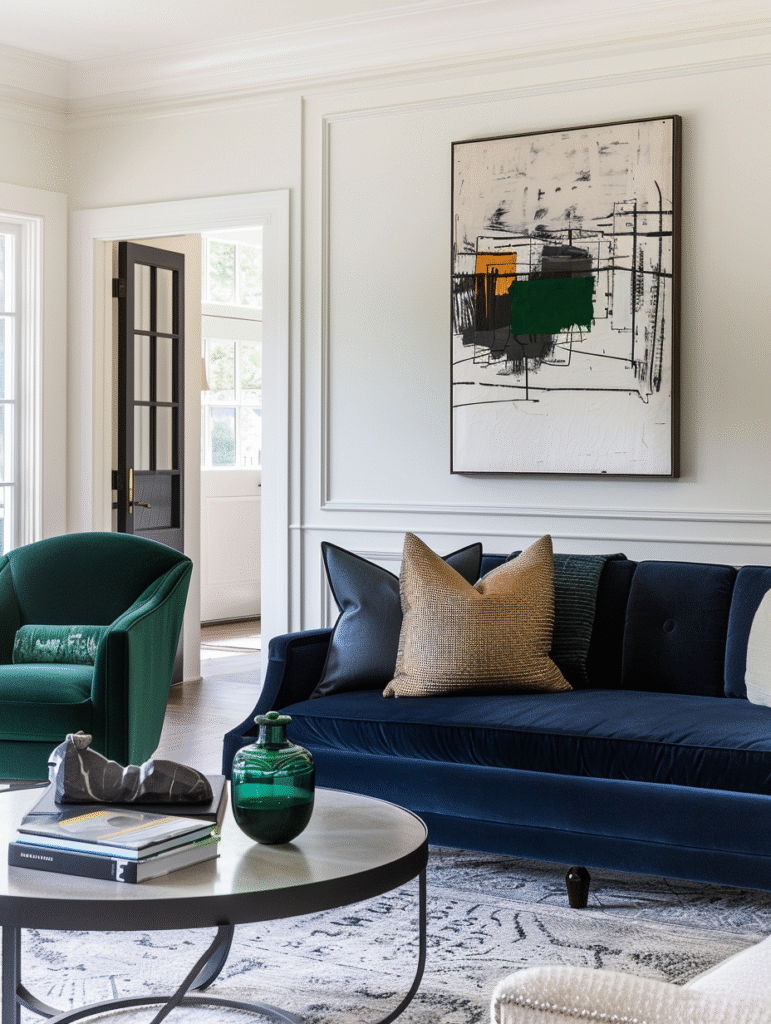 Repeat these colors subtly throughout the room to create flow and cohesion.