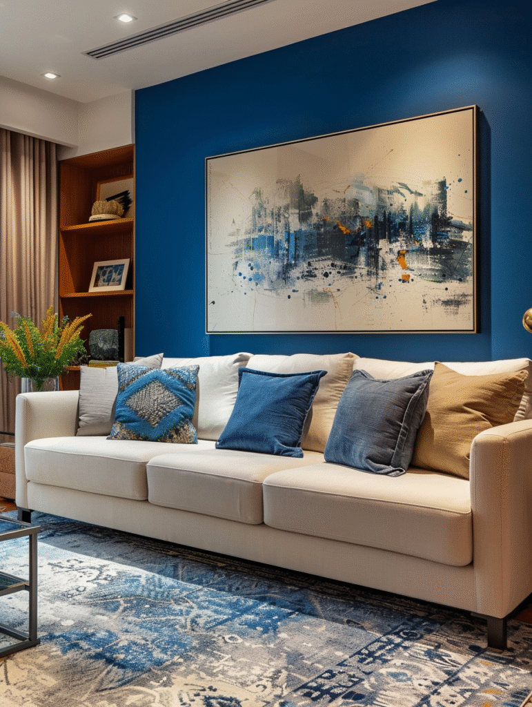 Multiple bold artworks, statement furniture pieces, patterns, and textures competing at once can overwhelm the eye and make a room feel chaotic.